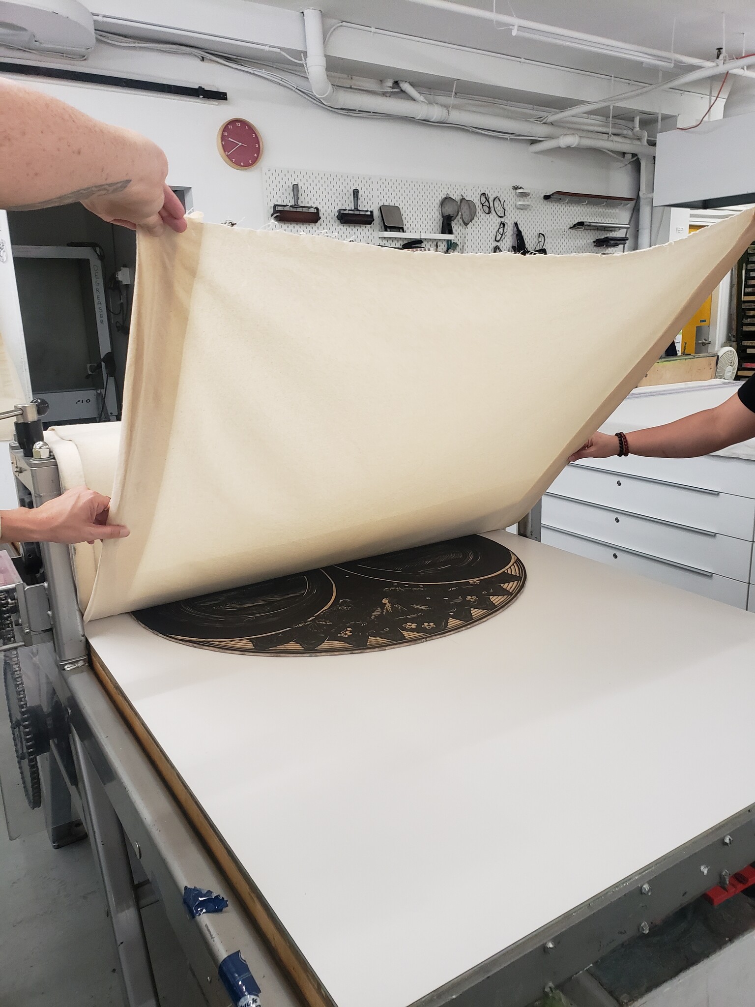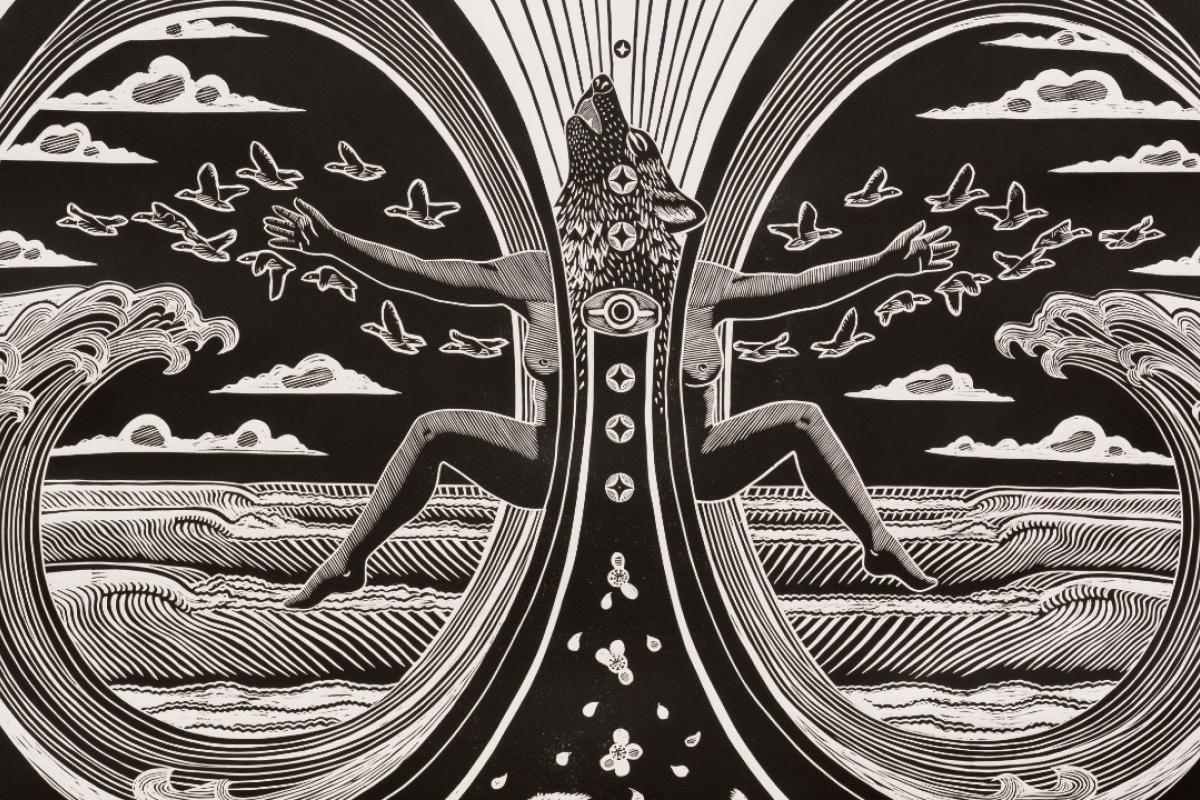 This project resulted in a series of large scale woodcuts printed onto fabric which were later exhibited at the Burnaby Art Gallery.