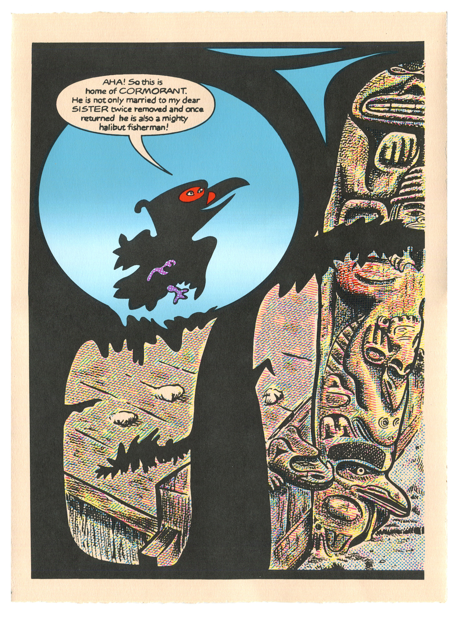 "Lousy Tales" is a six layer screen printed edition completed in partnership with Gallery Jones and Michael Nicoll Yahgulanaas.