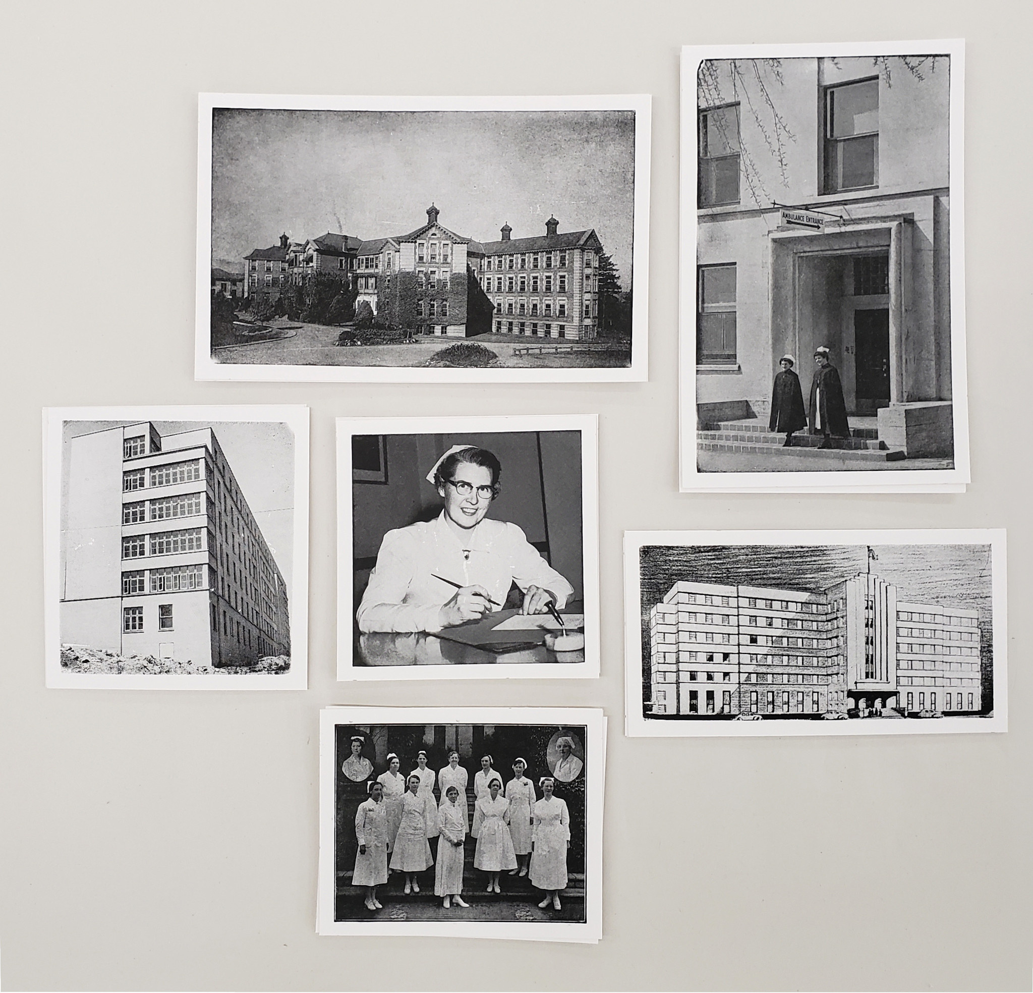 This project involved hand printing six antique letterpress plates from the Royal Columbian Hospital's archives.