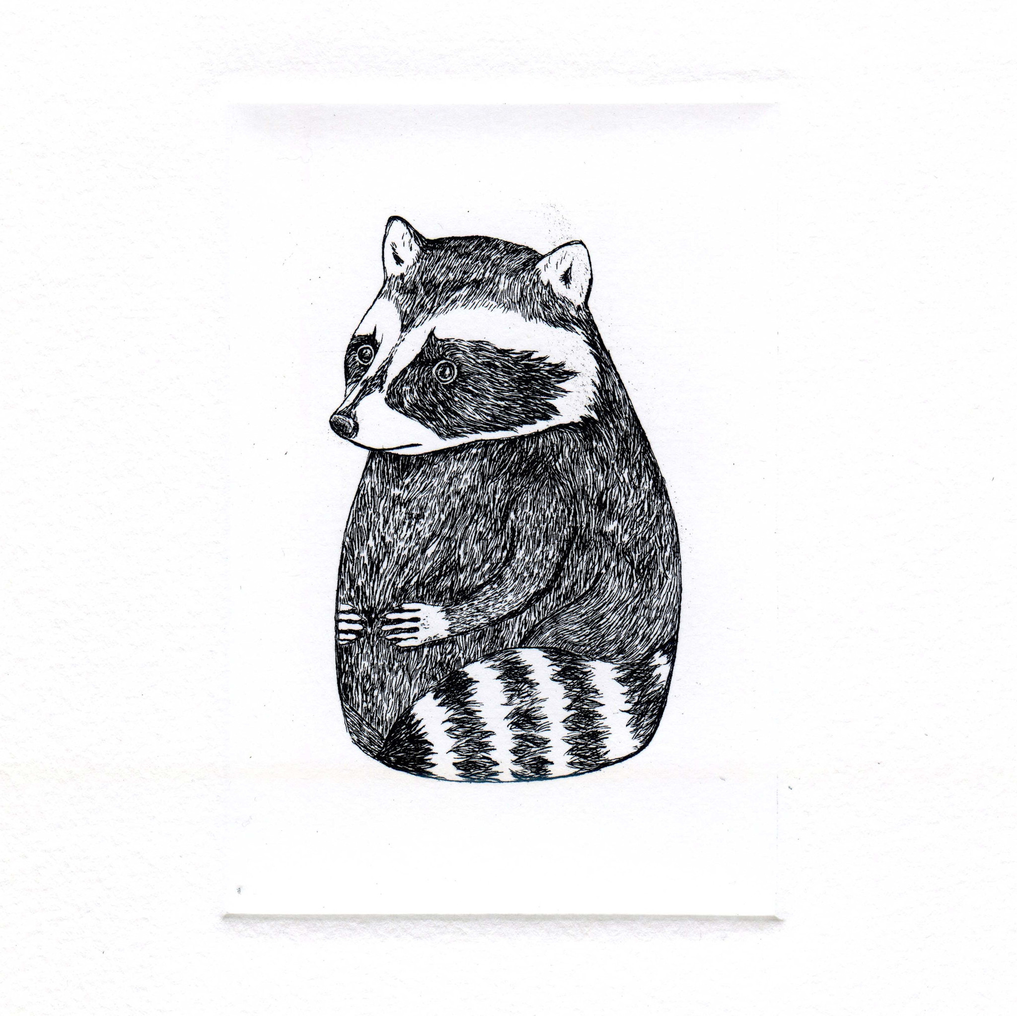 Intaglio is a family of printmaking techniques in which an image is incised into a plate, the incised areas of the plate holds ink during the printing process. A traditional etching press is used to apply enough pressure onto the plate to transfer the ink onto cotton rag paper.