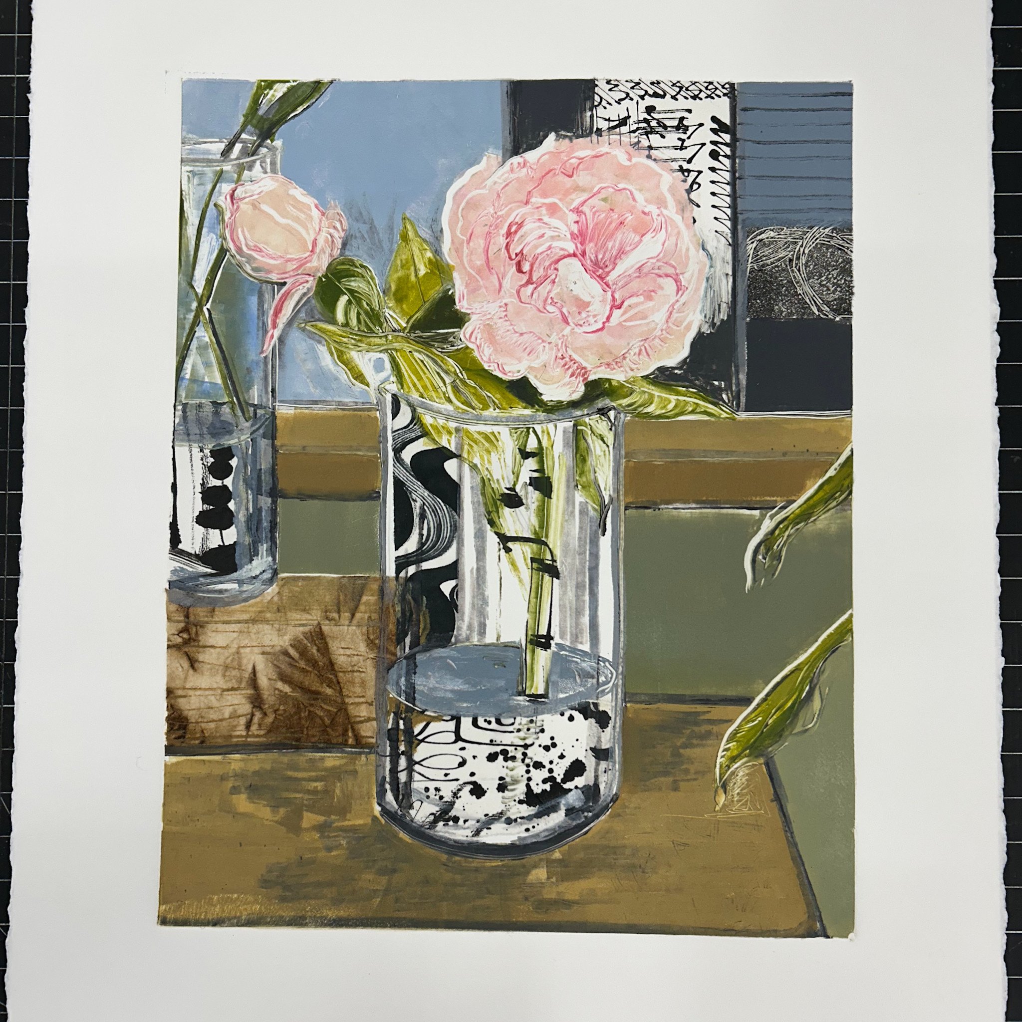 Sherida Charles Peonies in Glass at the Market (Large Monotype)